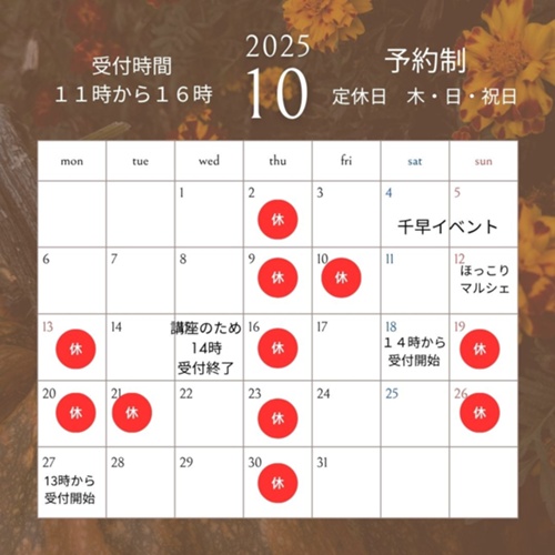 ご予約時には営業日をご確認ください