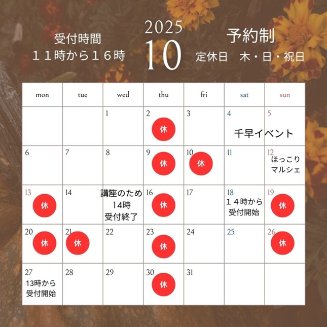 10月の営業日です