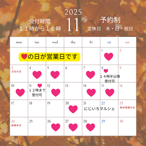 ご予約時には営業日をご確認ください